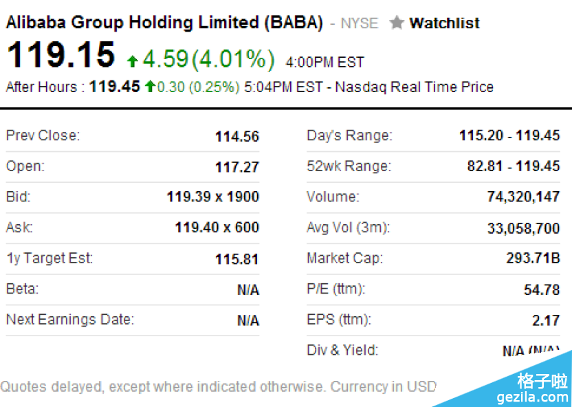 06:07 阿里巴巴今日收报119.15美元,上涨4.59美元,涨幅为4.01%,市值逼近3000亿美元。