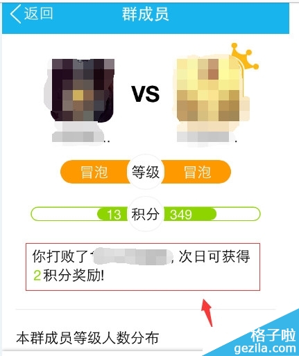 3、第三个得分要点是,在手机QQ和其他群友PK,每天最多可以拿下5分。点击群友头像或者头衔就能进如pk页面,赢了第二天将会给你加上积分