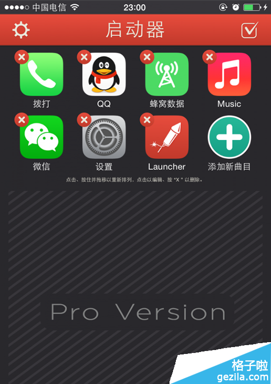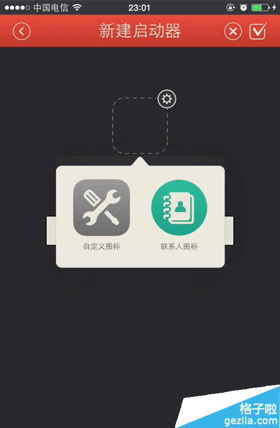 第三步:打开下载好的软件,点击右上角的编辑图标,再点击“添加新曲目”,选择“自定义启动器”,在名称里填写“蜂窝数据”,在URL里填写蜂窝数据相应的代码:prefs:root=MOBILE_DATA_SETTINGS_ID。都弄好后可以点击右上角的对钩,保存。本篇教程的重点都在这串代码上了。