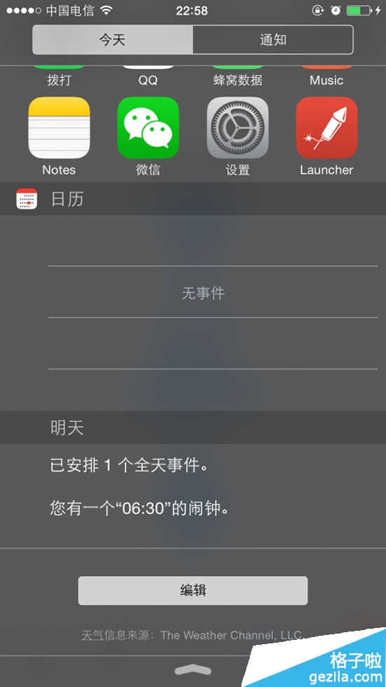 第二步:下拉通知中心,点编辑,将launcher 添加到通知中心。