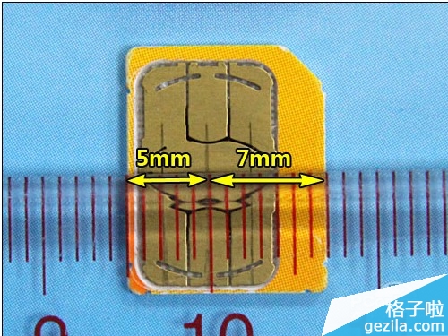 横着Micro SIM卡的状态下,中心点距离两边的距离分辨约7mm和8mm,注意此时缺角在右下方。