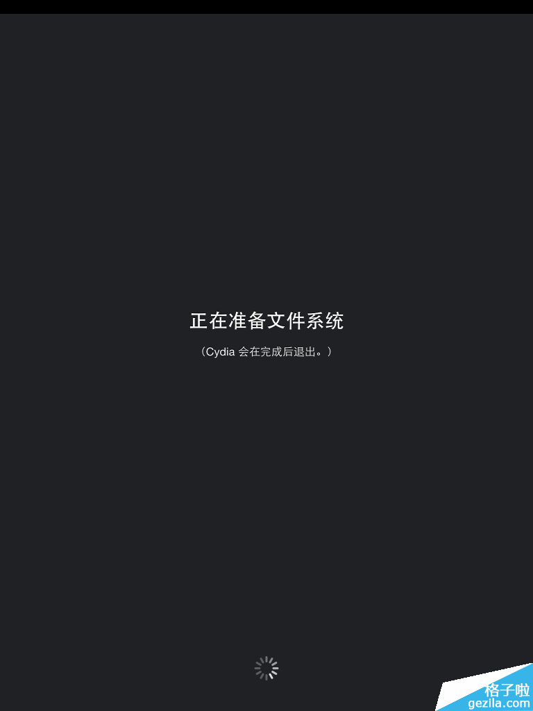 12.此时,设备会自动重启,当重启完成后您可以解锁您的设备,看到桌面上熟悉的Cydia。,点击Cydia会提示“正在准备文件系统”,稍等片刻,完毕会自动注销桌面。