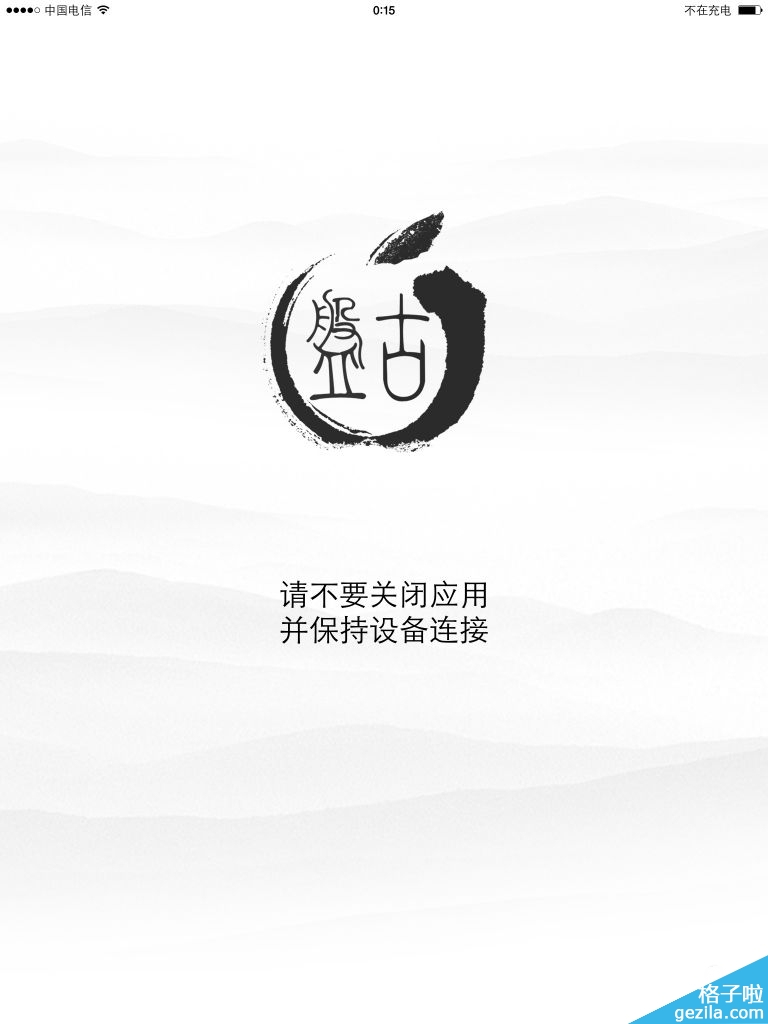 8.此时设备上会显示盘古的图标,桌面上的越狱工具显示正在处理。