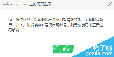 3、需要主要的是腾讯自助解封工具只提供一次机会并需同意清楚欢乐豆才能够解封,小伙伴们如果同意的话点击确定即可解封了。