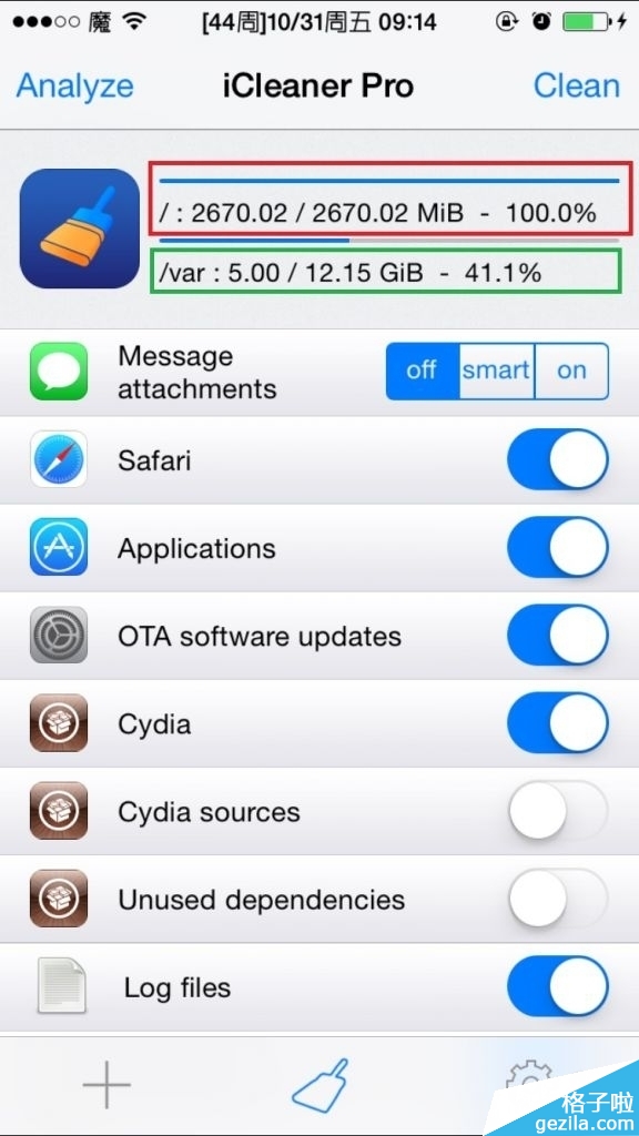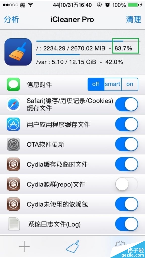 很多人因为安装cydia1.1.13特别版(支持密码锁不白苹果)或者安装新字体等原因出现了“ 存储容量几乎已满”的提示,我也是。如我这种深度强迫症者是一定要想办法灭掉这种提示的,原理和方法如下:
