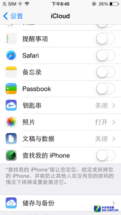 除了辅助功能选项当中的细节,如果大家对于将手机应用数据随时上传到云中保存认为没有必要,那么iCloud选项中的“文稿与数据”也完全可以选择关闭。