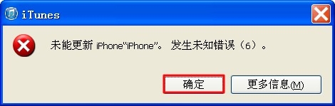 但也有一部分用户在升级时iPhone固件过程中遇到iTunes弹窗提示“未能恢复iPhone发生未知错误(6)”,同时设备上出现USB连接iTunes的界面,无法成功升级。这大概是因为您采用iTunes直接【检查更新】的方式升级。当设备连接到iTunes时,它会自动保存升级前的设备状态,待升级完成后iTunes会自动帮我们恢复备份,也就是它会试图恢复带有越狱的备份,这样就容易出现未知错误6。