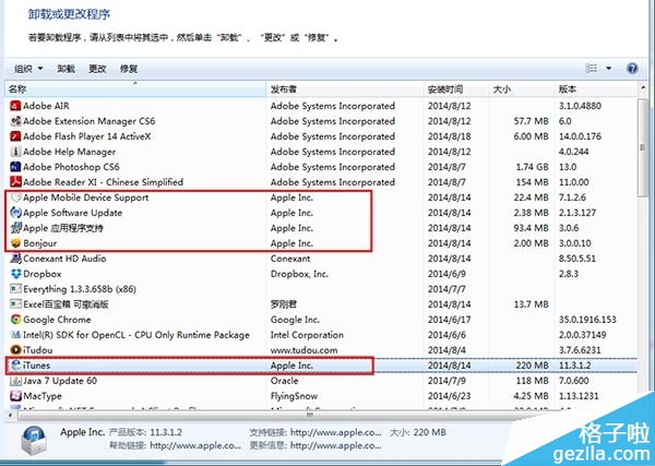 1.彻底卸载电脑里原有的iTunes,进入【控制面板】——【程序和功能】,将发布者为“Apple Inc.”的程序全部卸载。