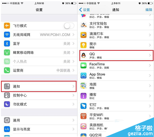 一.进入手机设置,然后进入“通知”设置,之后再进入“QQ通知设置”,如下图所示。