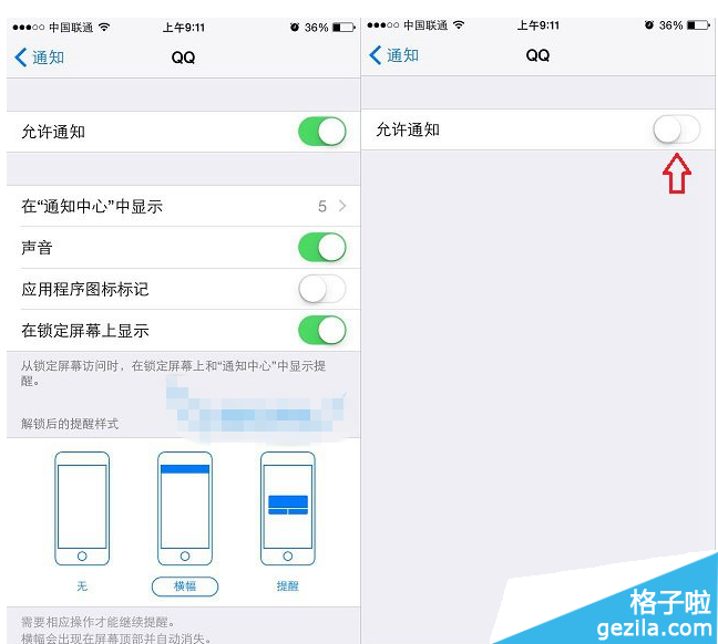 二.在通知QQ设置中,我们将“允许通知”关闭就可以了,如下图所示。