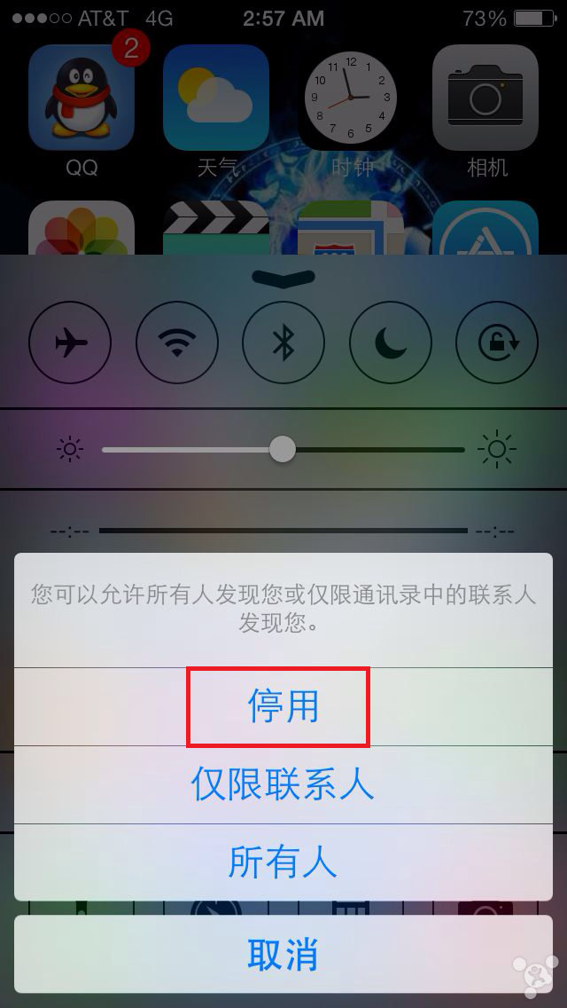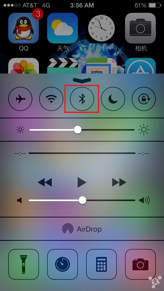底部向上滑动动作呼出 控制中心 > 关闭蓝牙