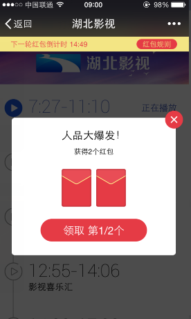 1、扫码进入活动入口,点击互动即可看到系统推送的红包;