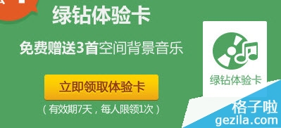 想免费玩转QQ空间背景音乐吗?那就赶快来免费领取绿钻体验卡,还可享受5Q币的现金抵扣券正式开绿钻的资格(相当于5折),还木有领过的小伙伴儿可以去试试哟!