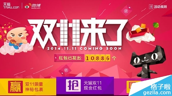 天猫神秘包裹活动在天猫官方微博火热进行中,抢天猫双11现金红包,明星还派红包哦。那大家知道天猫神秘包裹是从哪一年开始举办的? 答案是2013年啦!