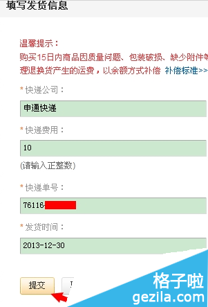 8、然后在认真的填写物流单号。 快递费什么的!! 然后点击确认按钮!!