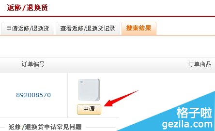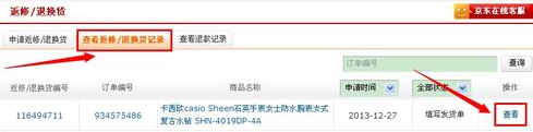 6、然后在点击“查看返修/退换货记录”! 然后在点击订单后面的查看按钮!!
