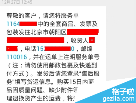 4、申请成功之后手机会收到短信提示! 然后你按照短信上面的物品寄送地址。 喊快递来把物品寄出去!!