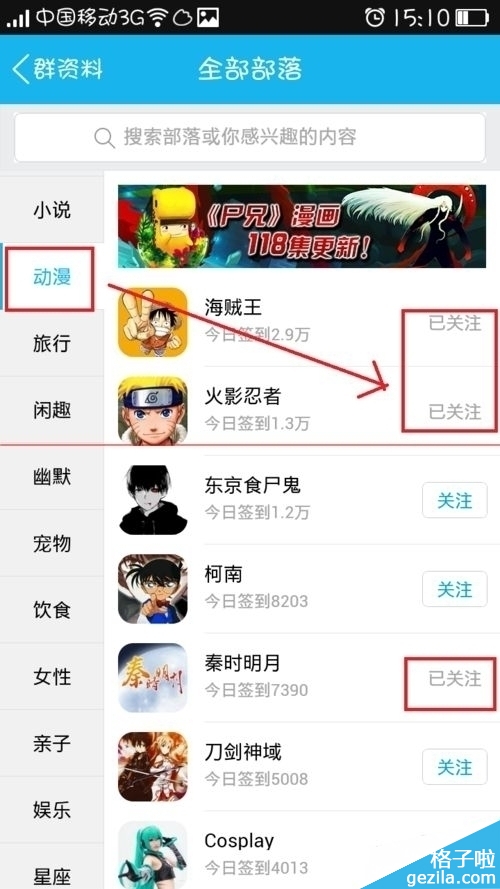 5、不如柚子我喜欢【动漫】就选择它这个分类,然后在关注喜欢的动漫即可关联兴趣部落了。