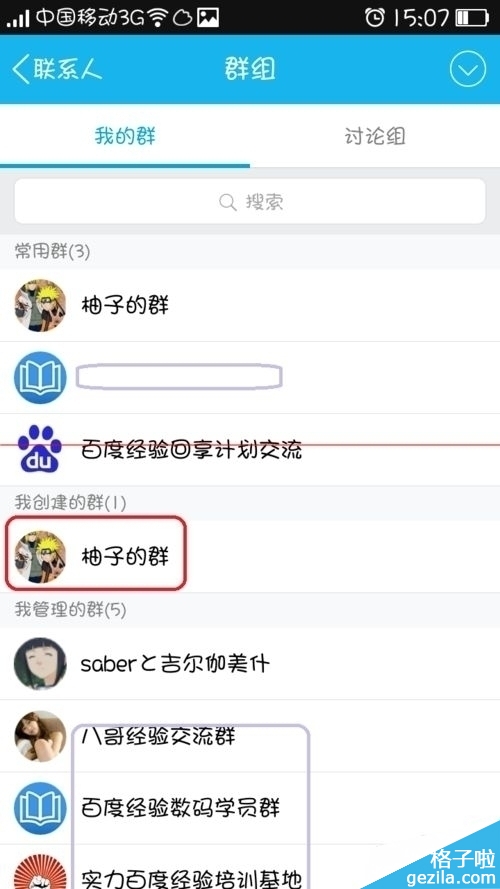 2、然后在QQ首页上选择【联系人】中的【群组】,选择你创建的群。ps:必须是你自己创建的群哦。