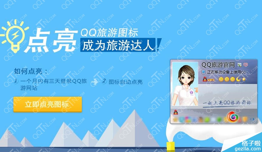 2.一个月内有三天登录QQ旅游首页,即可点亮QQ旅游图标