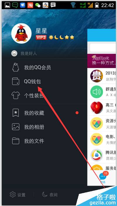 1、登录手机QQ,点击个人头像,进入QQ钱包;