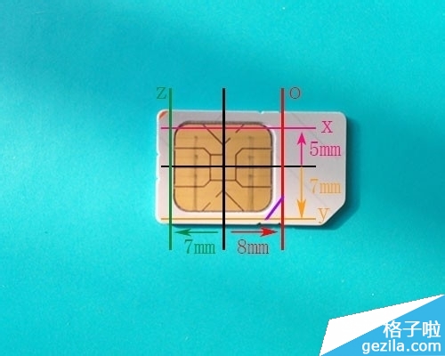 a的一半是6.5mm,画一条垂直于a的平分线,然后以该平分线为界,往左找7mm,画一条平行于短边的线z,往右找8mm,画一条平行于短边的线o,这两条线就是新卡的两个边。