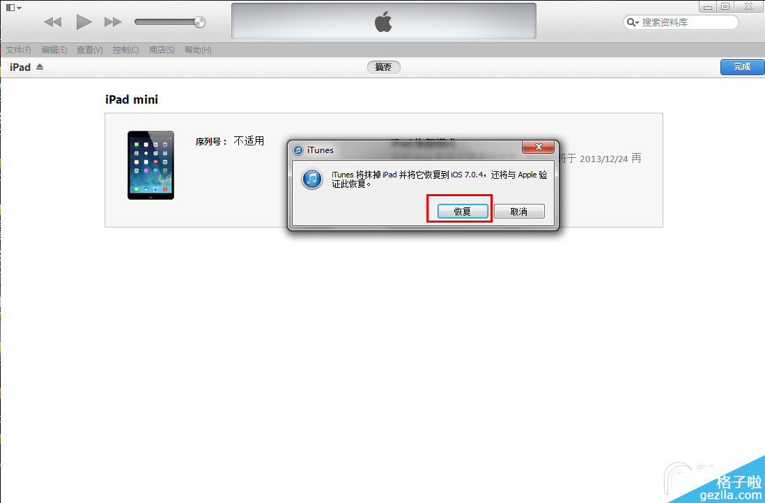 ①、通过itunes 恢复会导致清空iOS设备上所有的资料,建议先备份好重要资料。