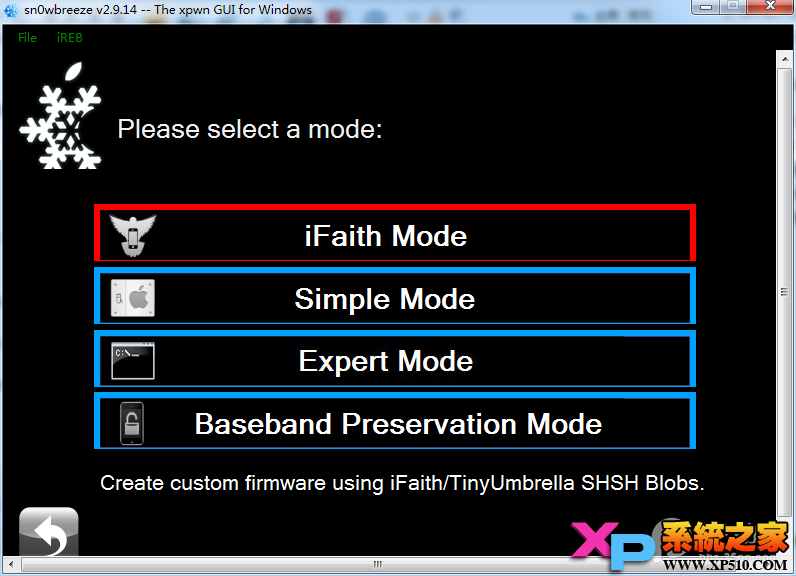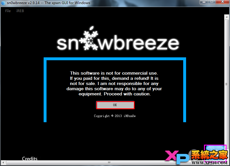 二、打 【sn0wbreeze 雪花】降级工具--点击提示窗的【OK】按钮--点击下一步