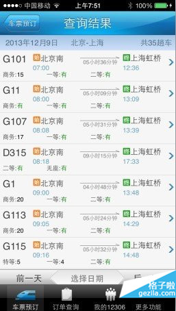 -支持舒适度排序剩余火车票。方便快速找到高铁/动车/卧铺票。