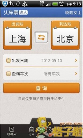 用火车票达人,随时随地买火车票。高峰期还能抢火车票,自动登录铁道部官方订票网站,自动重拨官方订票电话(95105105),直至成功。