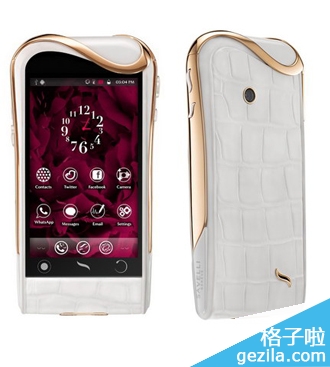 由著名珠宝商Savelli推出Savelli Jardin Secret手机专为女性打造,外观设计非常柔美。它的最大特色是镶有395颗碎钻,同时机身还使用了18K玫瑰金、蜥蜴皮、陶瓷等多种材质,十分奢华。然而,该手机的内置系统则是普通的Android。