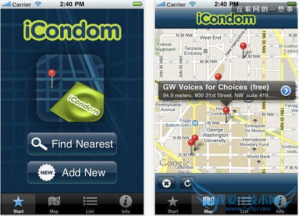 关键时刻没有安全套?iCondom应用会根据用户的地理位置提示最近的安全套购买小店或售货机。最重要的是,这个应用也欢迎用户提供内容,上传购买地址和营业时间。