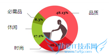 从消费者的态度上看,“屌丝”重视有品质的商品以及时尚,一部分人注重休闲,而只有少于10%的人看重生活必需品(如上图)。这些数据表明虽然他们每个人都将自己定位为“屌丝”,他们仍然想要追求高品质的生活。