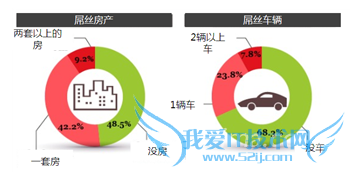 在调查的样本中,有42.2%的“屌丝”拥有一套房,占据48.5%的大多数“屌丝”没有自己的家,只有极少数人拥有两套以上的房。而其中绝大多数(68.3%)的“屌丝”没有车(如上图)。