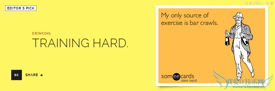 Someecards的主要功能就是提供模板,用户自定义文字后生成贺卡。可以说,在大家还互相寄送贺卡的年代做过一些贡献。可是你们看,画面上的人物还停留在李雷韩梅梅的年代,又没什么设计感,谁还愿意送朋友?那就切换逗比模式吧!