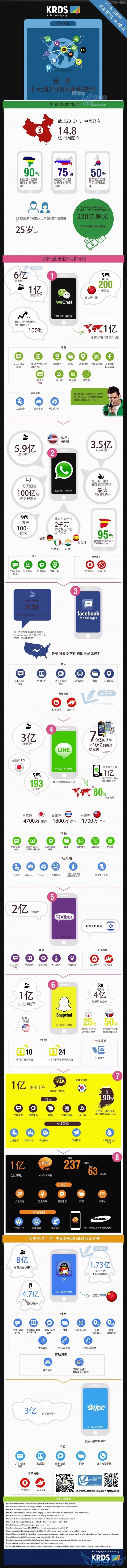 前十榜单中,中国产品两席——QQ和微信wechat,其余八名是Whatapp,Facebook Messager,Line,Viber,Snapchat,Kakao talk,Chat on以及大名鼎鼎的skype