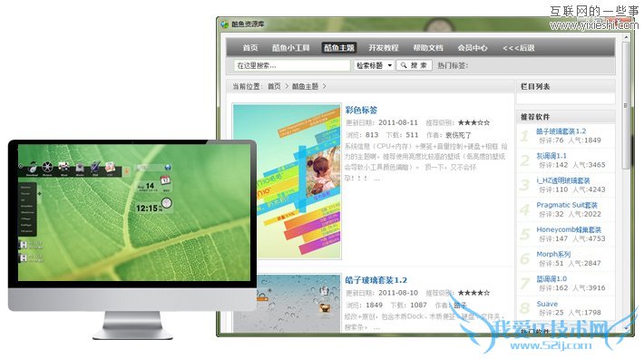 (1)酷鱼桌面:一个丰富widget平台,网页嵌入形式,皮肤主题和widget通过云端加载,减小软件容量。