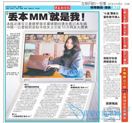 2010年南非世界杯期间最红的恐怕就要数“章鱼哥”了,六次预测德国队比赛结果,成为世界杯的传奇。然而还有一位在南非看球时名为sonrisa的漂亮中国MM,也在南非世界杯期间一夜走红,特别是她的若干张“奇特姿势的美腿照片”。