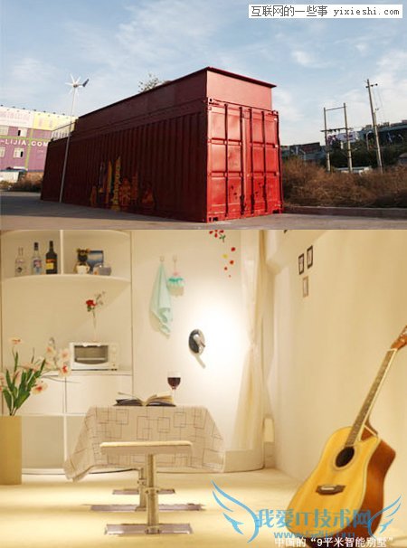 2010年,几个年轻人在北京三环边上,基于一个开顶集装箱,历时三个月,一点一点地改成了充满现代科技感的豪宅:可以自动收起和展开的床,能自动收叠的各种家具,能变幻出各种环境的墙壁,超级迷你的厨房和厕所,甚至有可以看日出日落的露台。而且,这一切可以通过一台诺基亚N8手机全全控制。