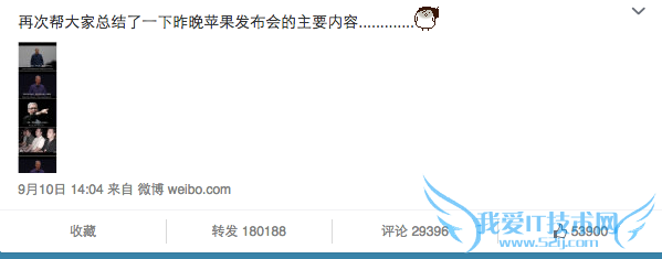 纯图片类的软文的应用也比较多。一种是微信、QQ对话框的截图,三言两语讲一个故事,不用PS,准备小号就好了。多用于感情类、撕逼类软文。另外一种是系列图片的拼接,更考验作者的功力,@天才小熊猫 那篇《苹果发布会的总结》就是经典案例。