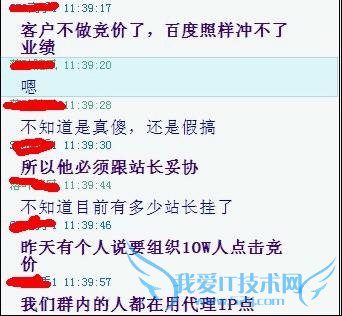 随着时间的推长,恶意点击百度竞价的站长也越来越多,目前已经有人组成10w的站长参与此事,不惜成本和代价来引起百度的重视,下图是今天早上和一位站长的聊天记录。