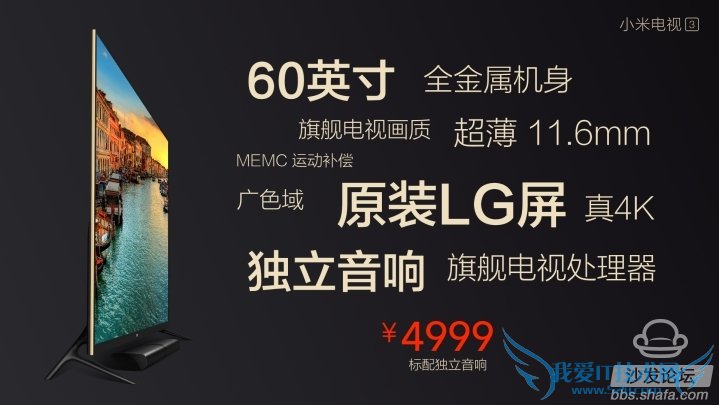 小米电视3挑战极限性价比,我们用了三年的努力达到了这个目标。60英寸LG屏,独立音响,旗舰4K电视仅售4999。