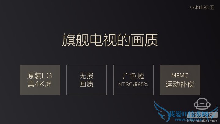 小米电视3搭载了原装LG真4K屏,广色域NTSC超过85%,加上MEMC的运动补偿,使其拥有旗舰级的画质体验。