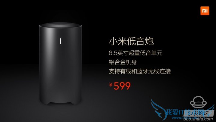 应很多米粉要求,我们此次将小米低音炮单独开售,6.5英寸超重低音单元,铝合金机身,支持有线和蓝牙无线连接仅售599元。