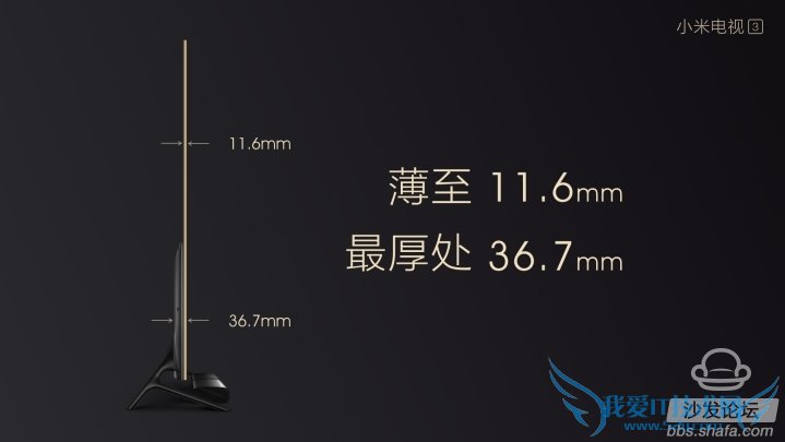 小米电视3拥有60吋大屏,超薄的全金属机身,最薄处薄至11.6毫米,最厚处仅36.7毫米。