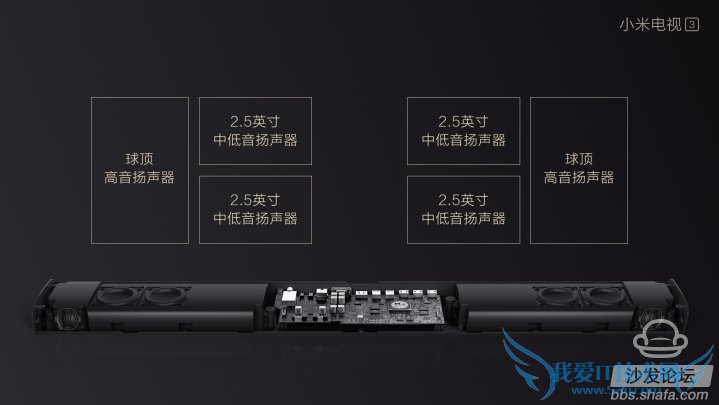 小米电视3和小米电视2一样拥有独立音响。本次我们全新升级,将音响的设计更加精良。