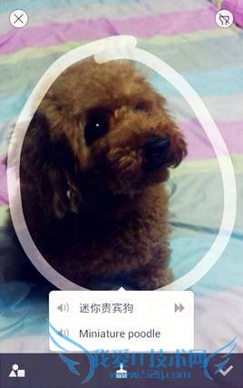“居然能认出是迷你贵宾犬,太强大了!”一位网友拍摄宠物的照片进行实物翻译,软件不仅准确识别出图片中的小狗,描述了小狗的品种,并且准确地翻译为“Miniature poodle”。