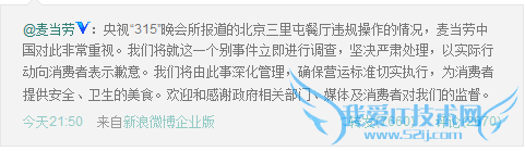 本文所分享的知识点是【麦当劳如何在央视315晚会曝光后快速利用微博公关】,欢迎您喜欢52ij所分享的新闻、攻略、电脑教程及手机知识等经验,下面是详细的讲解。