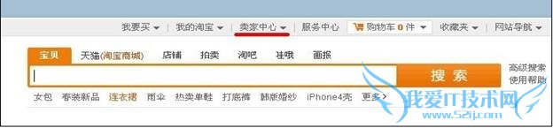 1. 登陆你的淘宝网会员名,并点击卖家中心,见下图:
