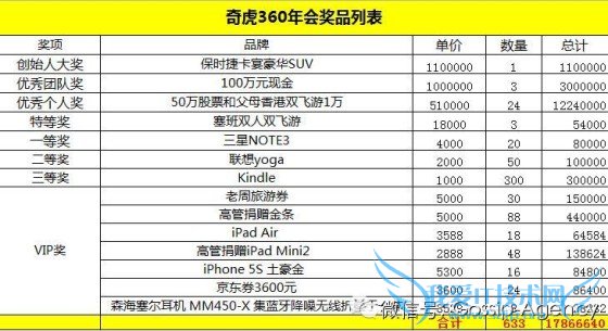 射掌搞到一份360年会奖品清单,惊呆了,算了半天:总价值高达1787万元!请问,最近你看到互联网公司还有比这“壕”的吗?